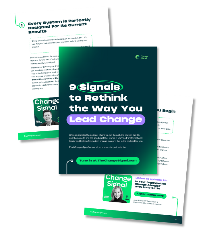 With this free download, you’ll get instant access to 9 powerful insights from top change thinkers, curated from the Change Signal podcast. These signals will help you challenge outdated models, expand your toolkit, and lead transformation with more clarity and impact.